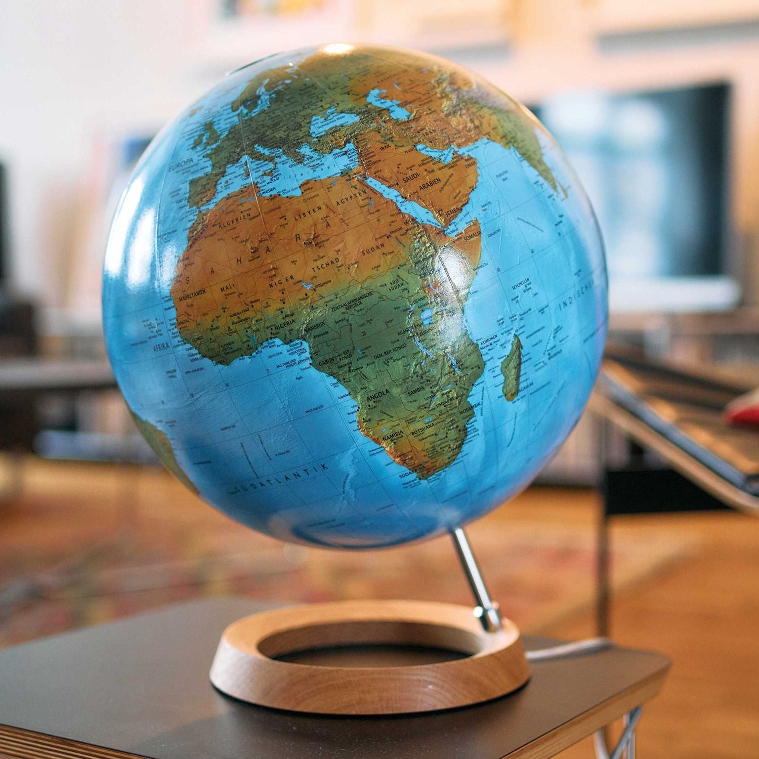 Dank der Doppelbild-Kartografie zeigt der Globus im unbeleuchteten Zustand ein physisches Kartenbild, das anhand moderner Satellitenbilder und -daten erstellt wurde. Schaltet man das Licht an wird ein aktuelles politisches Kartenbild angezeigt, das die Länder in unterschiedlichen Farben darstellt.